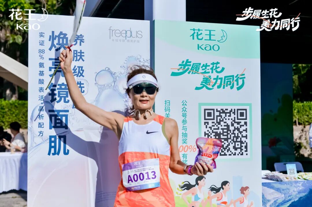 在赛后的互动区域,花王中国展区化身成为能量补给驿站,通过产品体验和互动抽奖,让女性跑者们亲身感受花王的产品与服务,尽享美好生活体验。